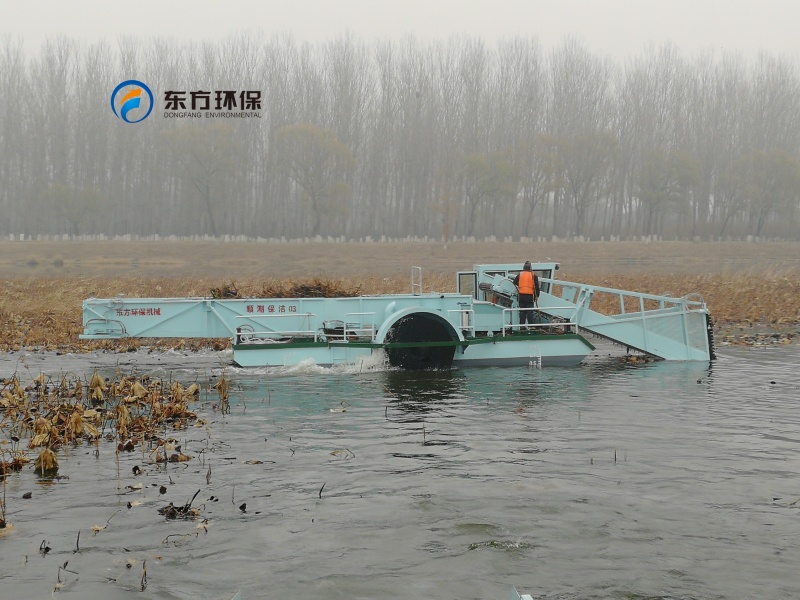山東東平湖管理局購(gòu)買的DGLW110型全自動(dòng)蘆葦收割船